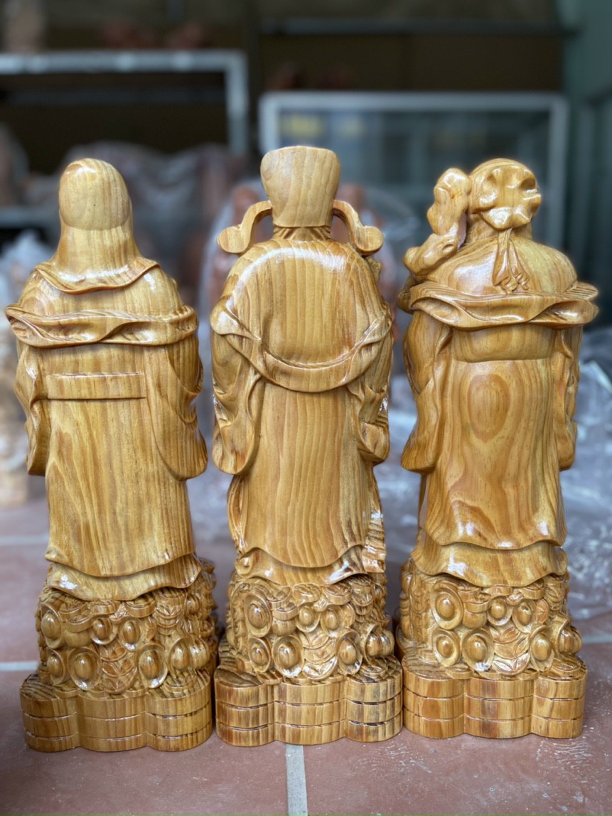 _ Bộ tượng phật tam đa phúc lộc thọ được làm bằng chất liệu gỗ bách xanh thơm phức liền khối tự nhiên 100%  _ Kích thước cao 40×13×11,5cm _ Bộ tượng phật tam đa