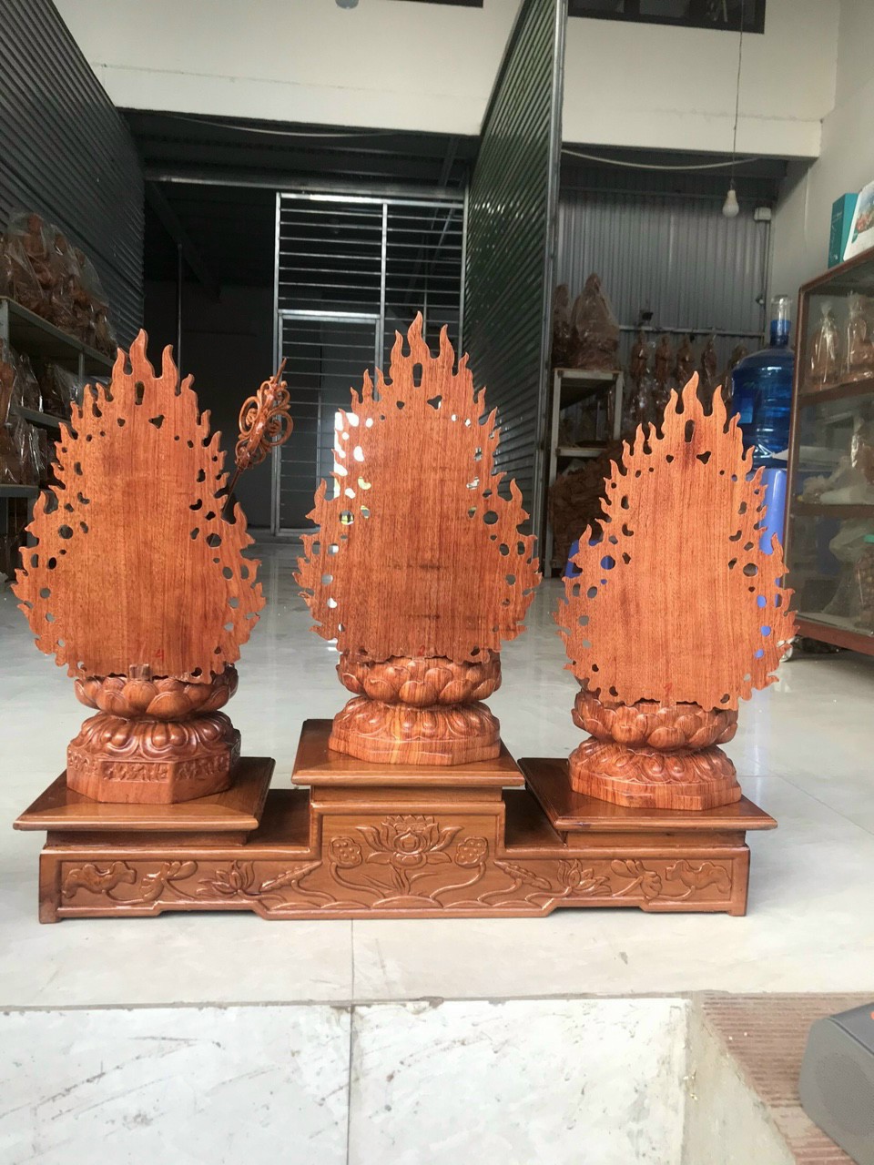 ✨Bộ tượng phật tam thánh bằng gỗ hương đá kt cao 40 ×20×20cm cả lá chắn hòa quang sâu lưng cao 50cm