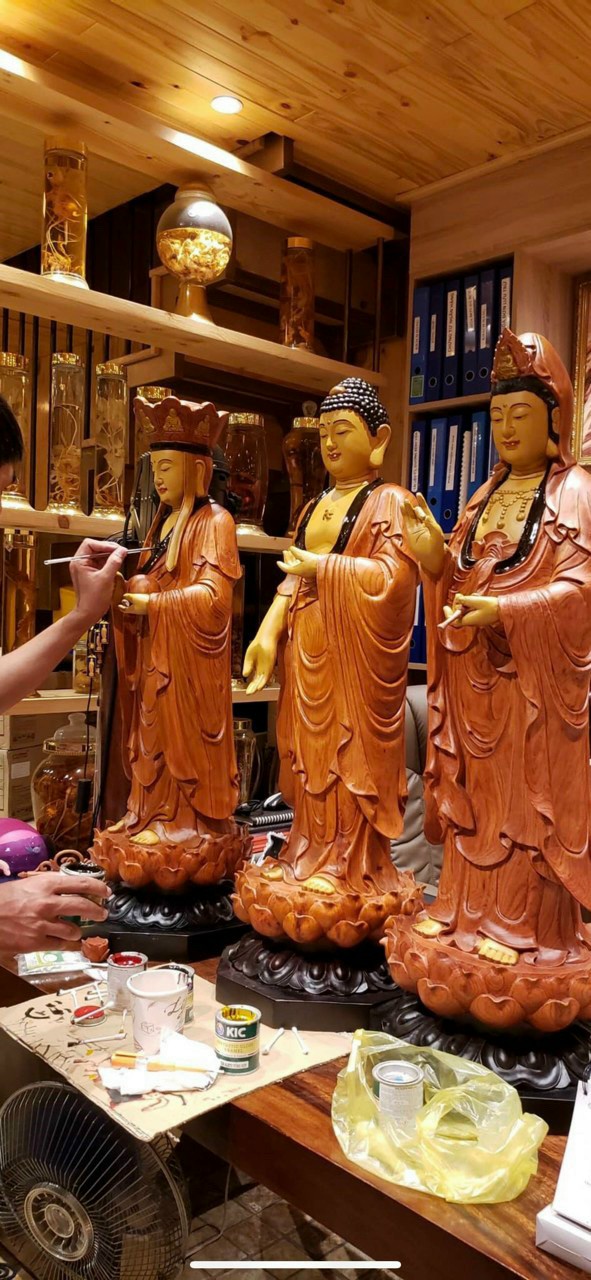 ✨Bộ tượng phật tam thánh bằng gỗ hương đá tô làm mầu giả cổ kt cao 50×15×15cm
