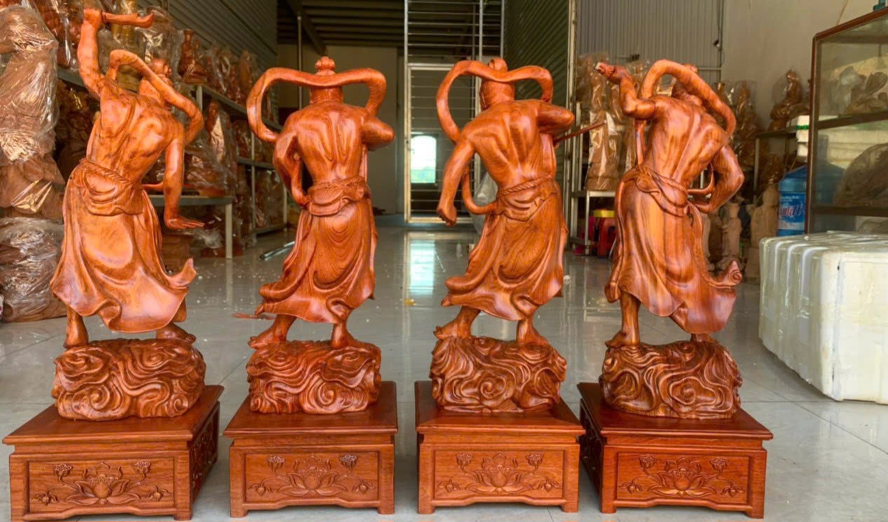 Mua tại TiktokBộ tượng tứ đại kim cương được làm bằng chất liệu gỗ hương đá liền khối tự nhiên 100% Kt cao 50×20×15cm
