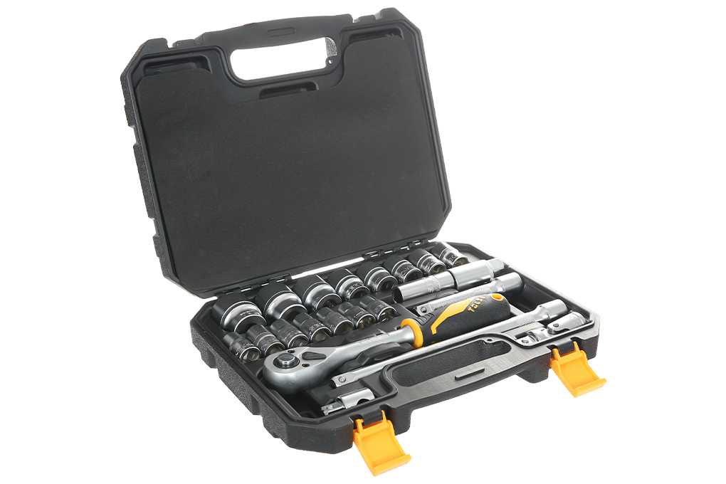 Bộ 17 ổ cắm 1/2" Bao gồm: 12 ổ cắm Dr 1/2": 10-11-12-13-14-15-16-17-18-19-21-24mm 1 tay cầm ratchet tháo lắp nhanh 1/2" 72T 2 thanh nối dài Dr 1/2": 5"(125mm) & 10"(250mm) 1 ổ cắm bugi: