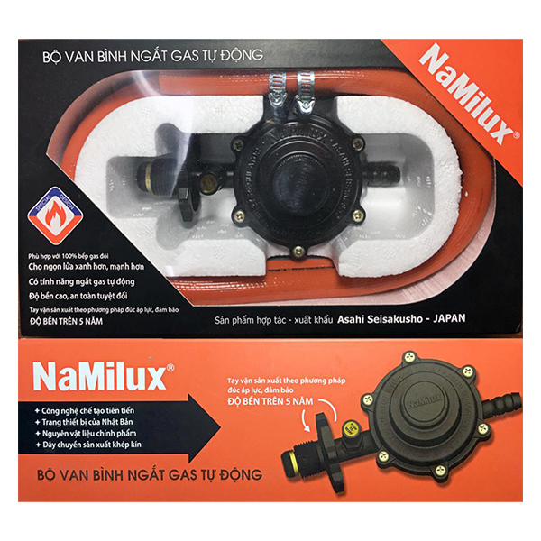 Bộ van bình ngắt gas tự động Namilux NA-345S-VN có tính năng ngắt gas tự động, phù hợp với 100% bếp gas đôi, cho ngọn lửa xanh và mạnh hơn. Sản phẩm đạt tiêu chuẩn