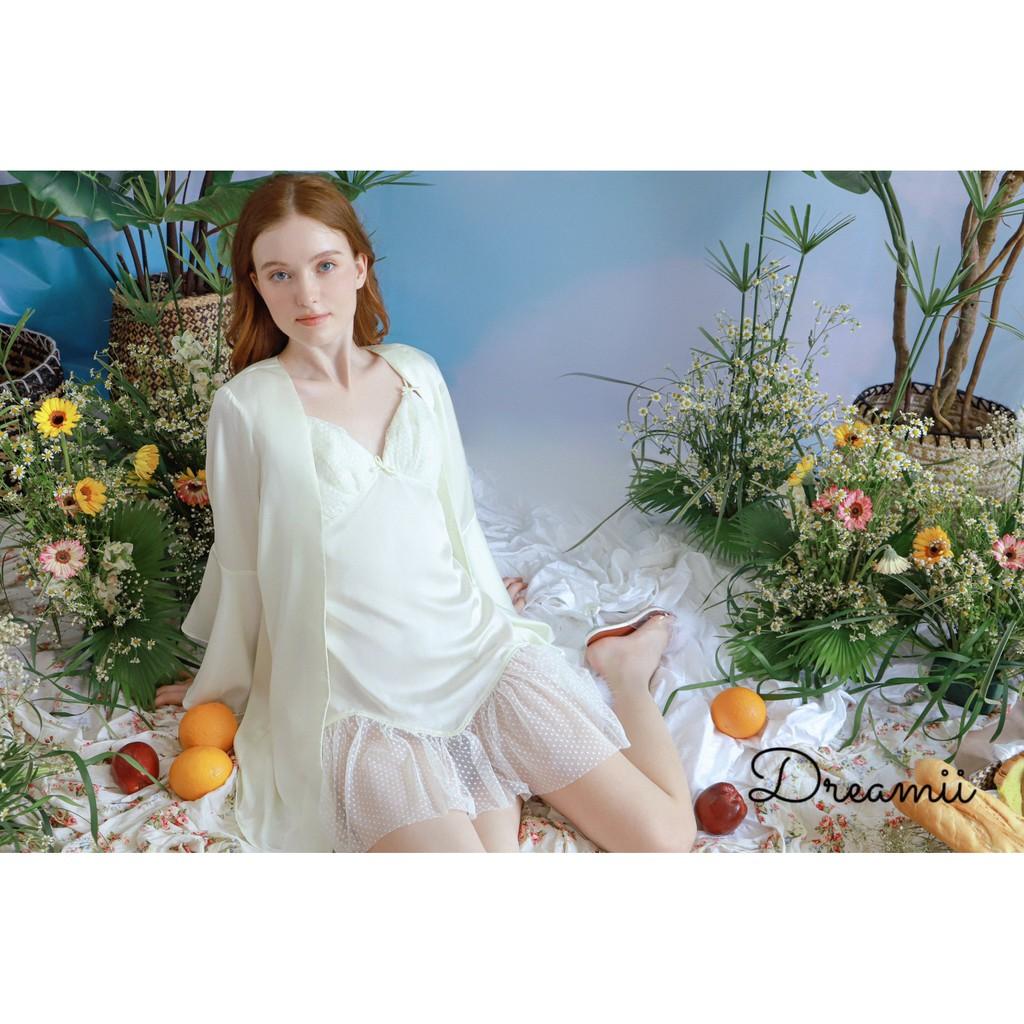 Với thiết kế lụa hai dây, chiếc váy Cloudy này tạo nên sự sang chảnh cho các nàng mặc ở nhà, đi chơi, đi dự tiệc. Chiếc cổ trái tim là điểm nhấn không thể thiếu tạo nên sự sang chảnh cho bộ đồ. Màu trắng tinh khôi đem đến cho người mặc một cảm giác tinh khiết, trẻ trung và sang trọng. Với họa tiết ren ở chân váy, tạo cho các nàng cảm giác nhẹ nhàng hơn.