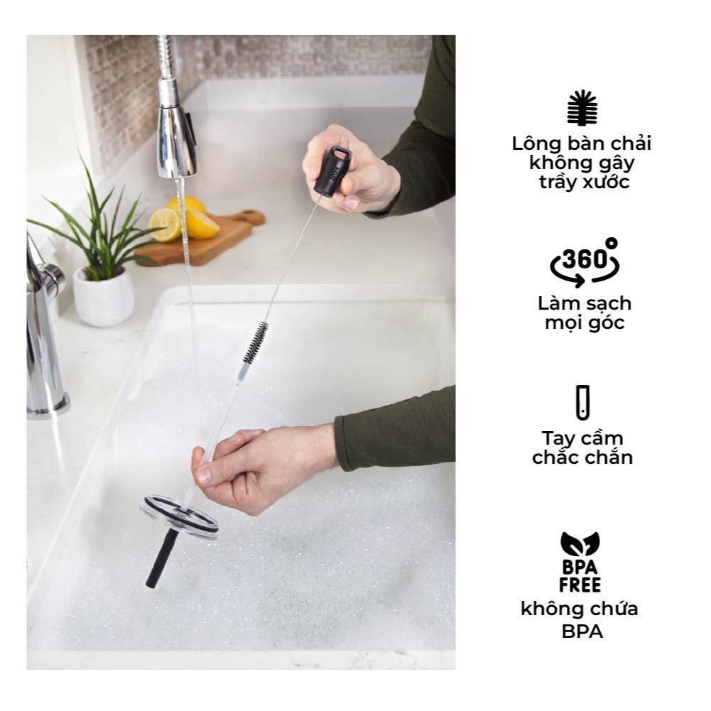 Bộ Cọ Rửa Bình Sữa Bình Nước Cao Cấp Tay Cằm Xoay 360 độ, Cọ Núm Ti, Cọ Rửa Ống Hút Chi Tiết Sản Phẩm: Chất Liệu: PP + TPE An Toàn Màu