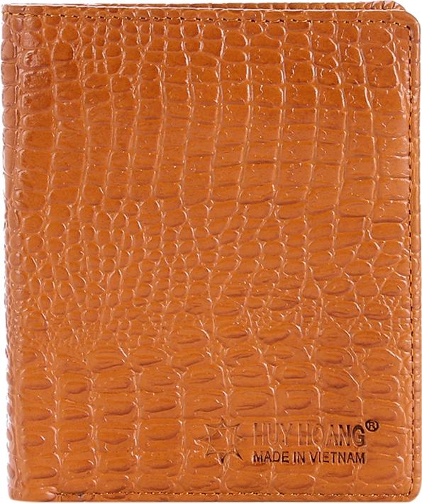 Ví/Bóp nữ da bò vân cá sấu Huy Hoàng 2 gấp màu nâu 3117