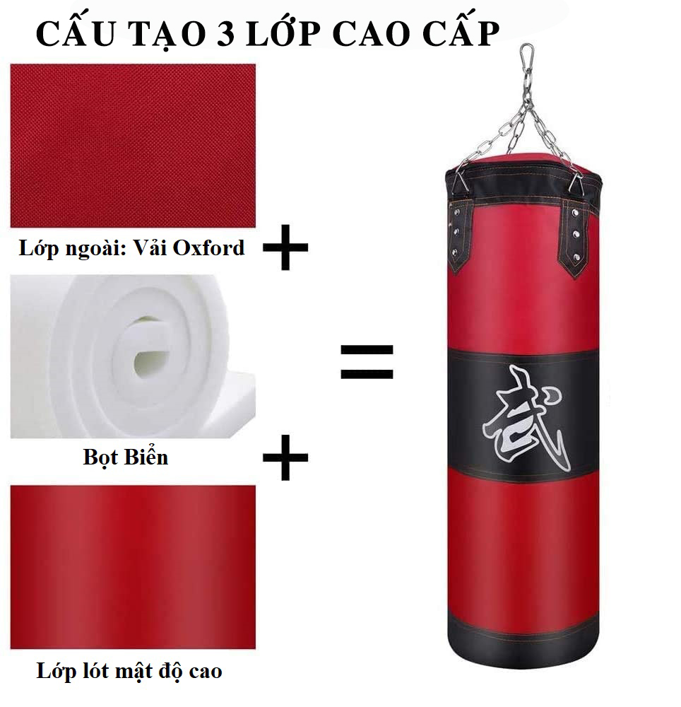 Vỏ Bao Đấm Bốc Treo Tường mua 1 tặng 7 có 3 lớp – lớp ngoài cùng là vải oxford (chuyên dụng cho bao đấm) – giữa là 1 lớp đệm mút – trong cùng là 1 lớp vải lót mật độ cao.
