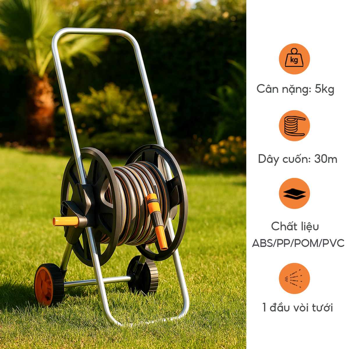 ✨Bộ vòi nước tưới cây rửa xe đa năng Lebenlang LBLB3365 dây dài 30m, 1 đầu tưới, thiết kế xe đẩy - hàng chính hãng