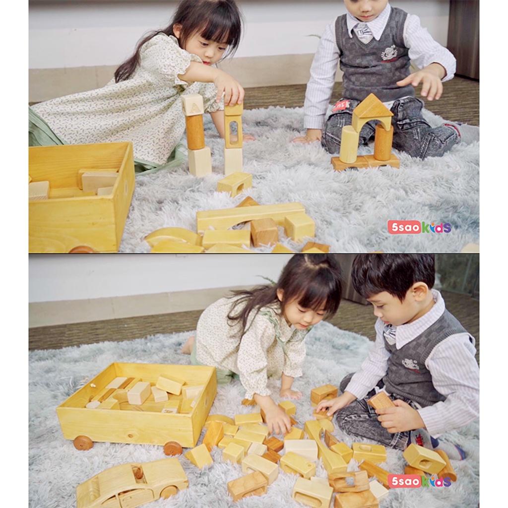 Bộ xếp khối hình học 99 chi tiết bằng gỗ bao gồm 99 miếng ghép khác nhau, có đủ các loại hình khối như khối vuông, chữ nhật, hình trụ, …cho bé kiến tạo những lâu đài, nhà cao tầng, khu vui chơi mà bé yêu thích.