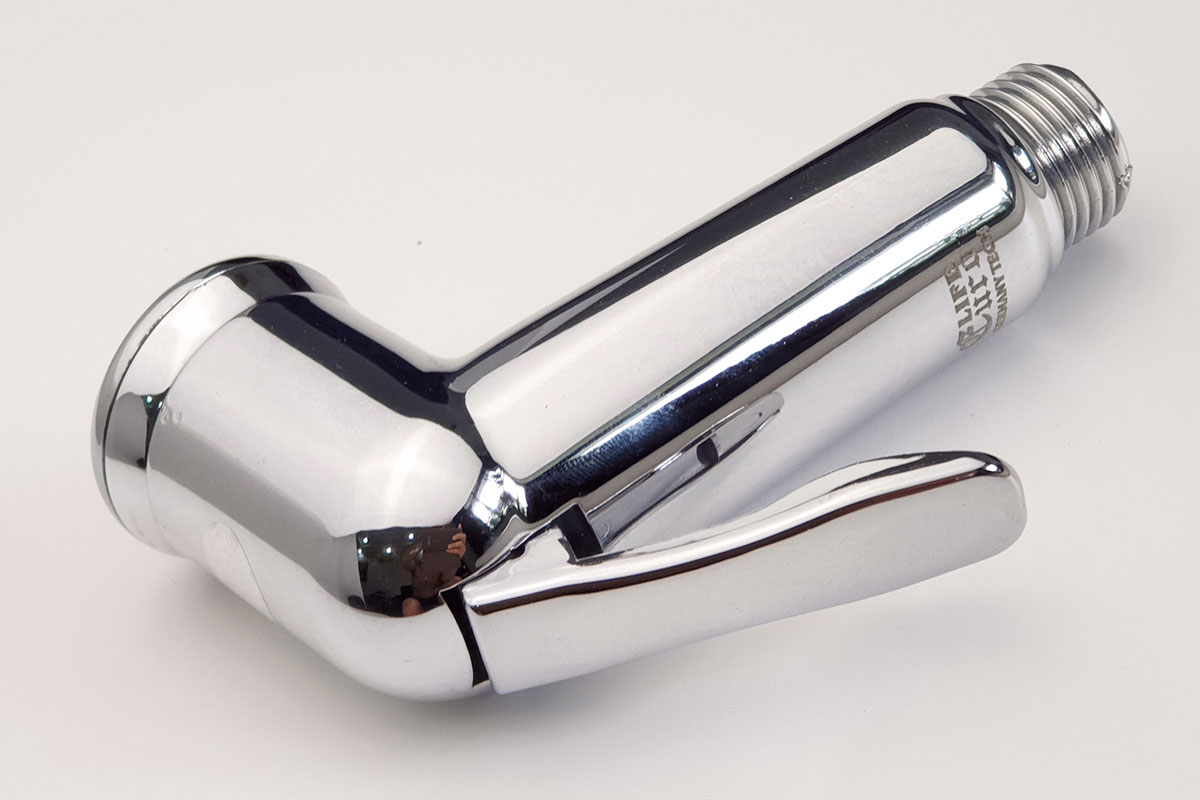 Tay xịt được làm từ nhựa ABS mạ Crome sáng bóng, chịu lực cao, an toàn cho sức khỏe người sử dụng