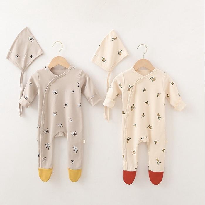 ✨Bodysuits cotton dài tay kèm mũ cho bé sơ sinh từ 0 đến 24 tháng, style Hàn Quốc