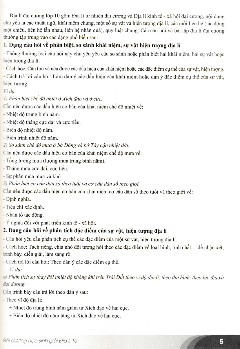 Sách Bồi Dưỡng Học Sinh Giỏi Địa Lí 10 được biên soạn dùng làm tài liệu tham khác trong hoạt động bồi dưỡng học sinh giỏi địa lí của giáo viên và tài liệu hỗ trợ hoạt động học tập cho các em học sinh có hứng thú học tập, khám phá, tìm hiểu và vận dụng kiến thức địa lí vào thực tiễn cuộc sống.