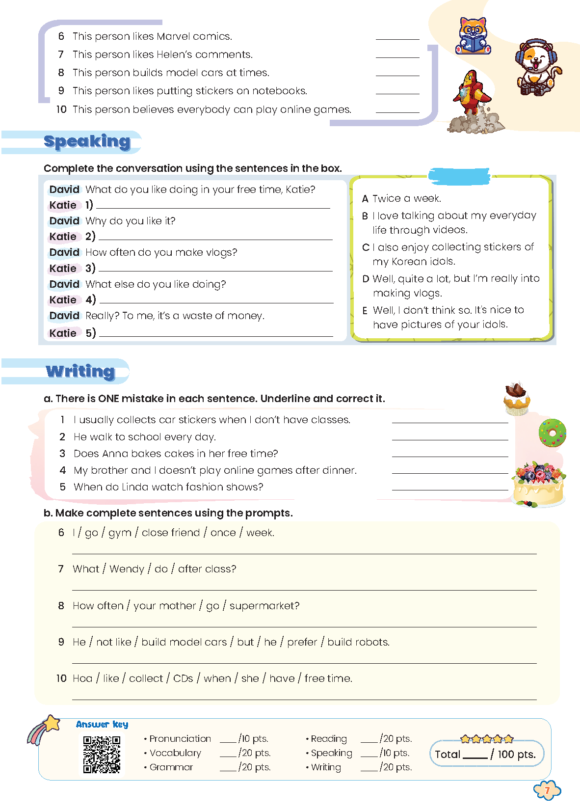 GIẢI BÀI TẬP BỔ TRỢ TIẾNG ANH 7 UNIT 1 FREE TIME LESSON 1
