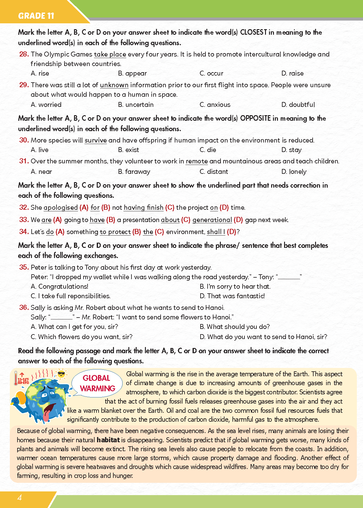 Giải Đề Thi Học Sinh Giỏi Tiếng Anh Lớp 10 (Đề số 1) Phần 4