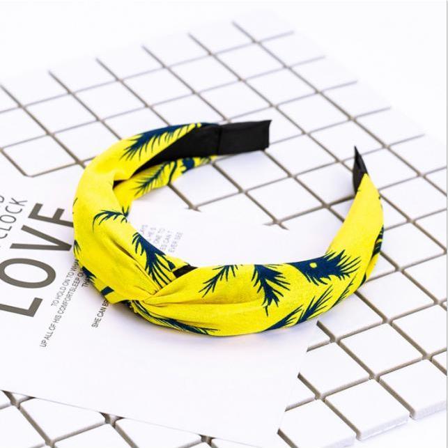 ✨Bờm cài tóc turban nữ kẻ phối họa tiết lá dừa nền vàng bản to BN34A
