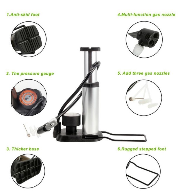 Bơm xe đạp, bơm xe máy, bơm ô tô bằng chân mini, tiện dụng, dễ sử dụng