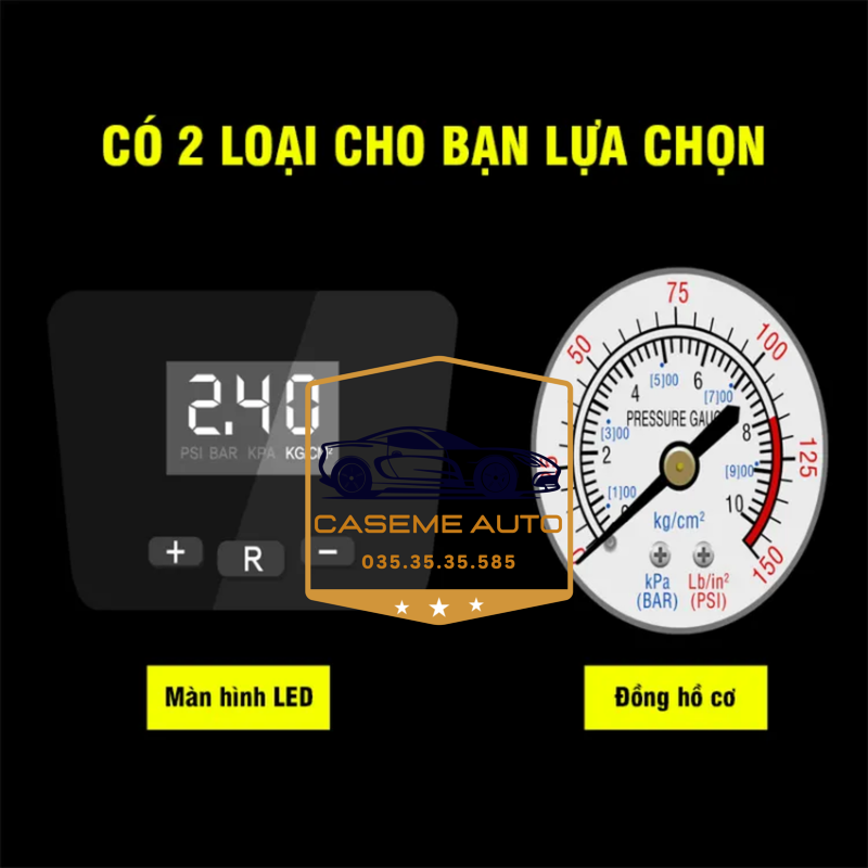 - Bơm đồng hồ cơ có cảm biến áp suất hơi, dễ dàng kiểm tra và theo dõi áp suất lốp