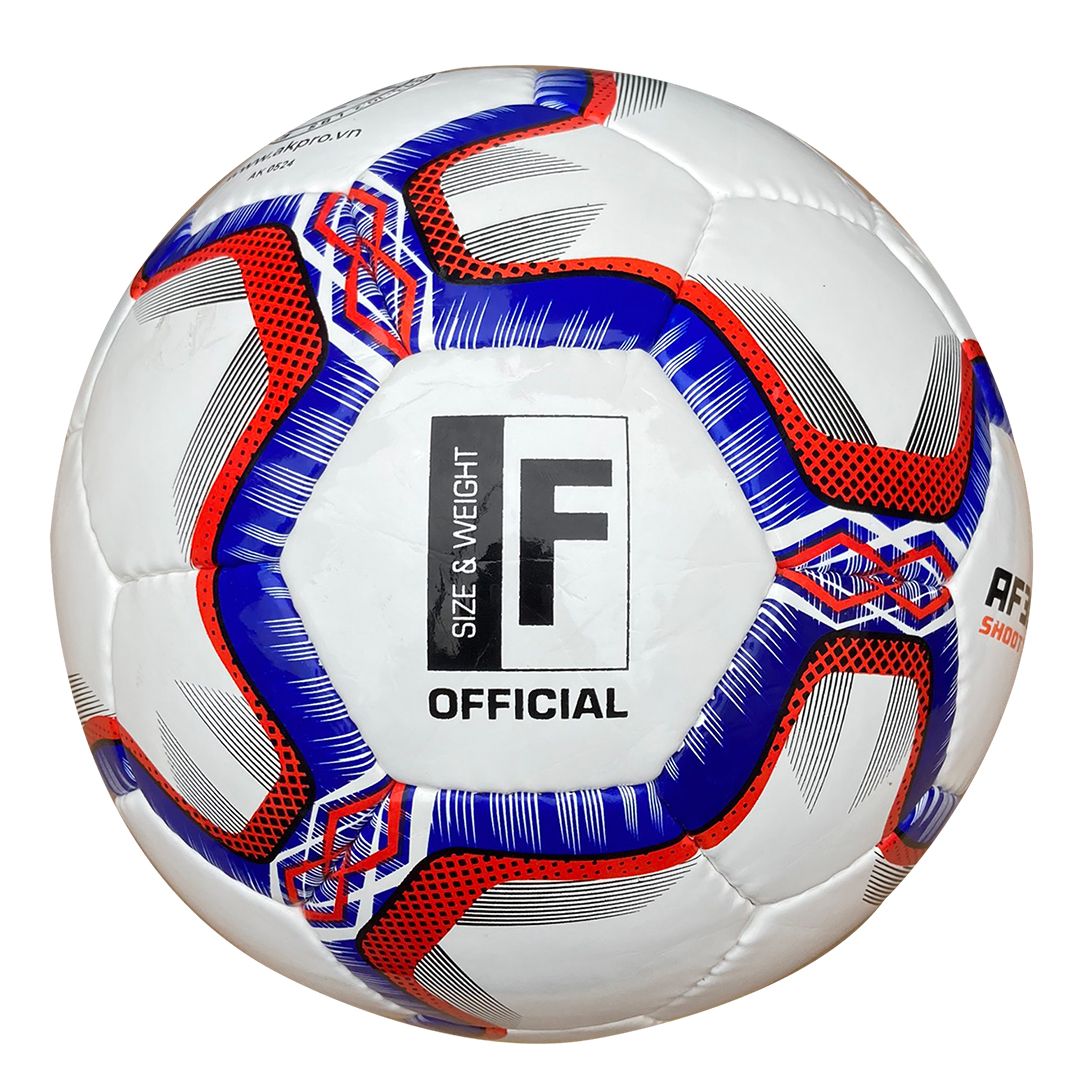 THÔNG TIN SẢN PHẨM Mã sản phẩm: AF3855 Size: F Chuyên chơi: Futsal - Sân 5 Số miếng ghép: 32 Màu: Trắng - Xanh/Đỏ Sản xuất tại: Pakistan Chất liệu: Da PU Ruột bóng: Butyl