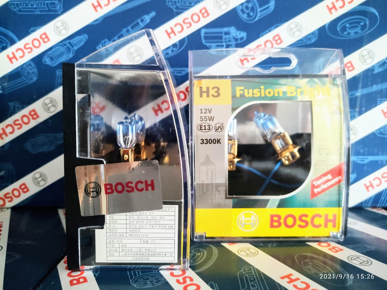 Bóng đèn Bosch. H3 12V 55W Fusion Bright 3300K (Hộp 2 bóng)