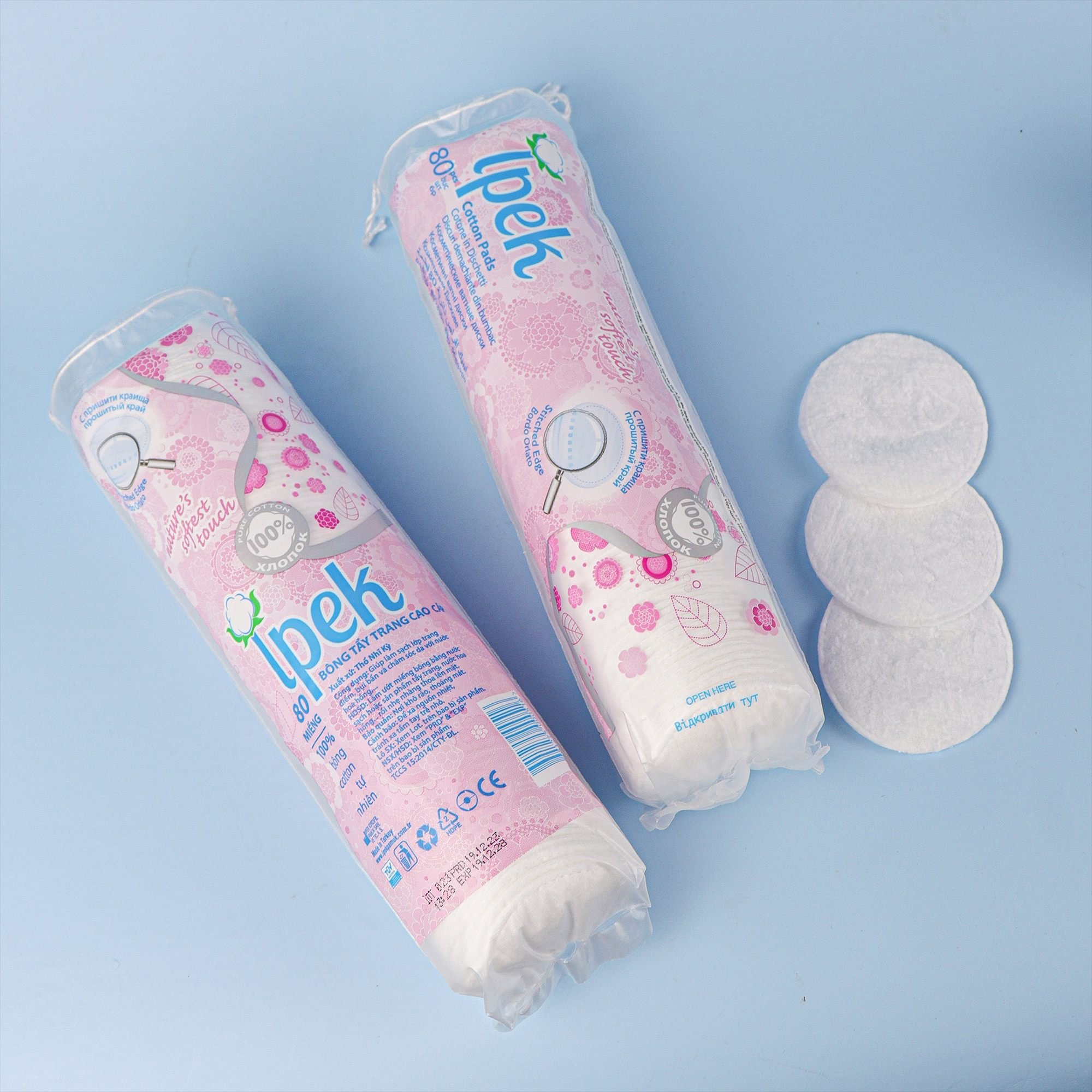 - Combo Bông Tẩy Trang Ipek 130 Miếng (Thổ Nhĩ Kỳ) thành phần 100% bông cotton là bông tẩy trang hữu cơ được sản xuất bởi công ty Ipek Idrofil Pamuk công ty hàng đầu
