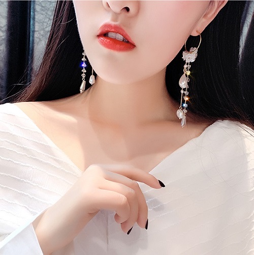 ✨Bông tai chuỗi ngọc trai pha lê sang trọng
