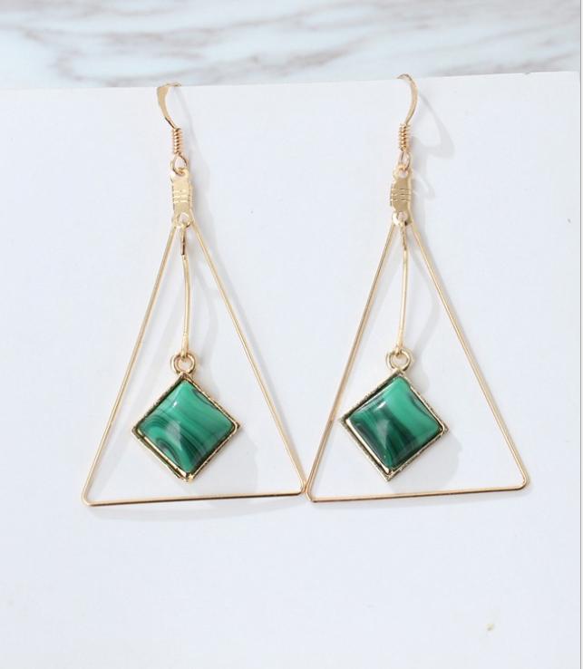 ✨Bông tai tam giác dáng dài đính đá xanh BT104