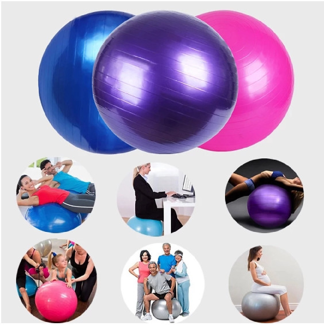 Giới thiệu: Bóng Tập Yoga Gai 65cm + Tặng Bơm Bóng, Kim Bơm Dự Phòng - Có 4 màu : Xanh dương, Đỏ, Tím, Ghi. - Tặng kèm : 1 Bơm bóng + 1 Kim