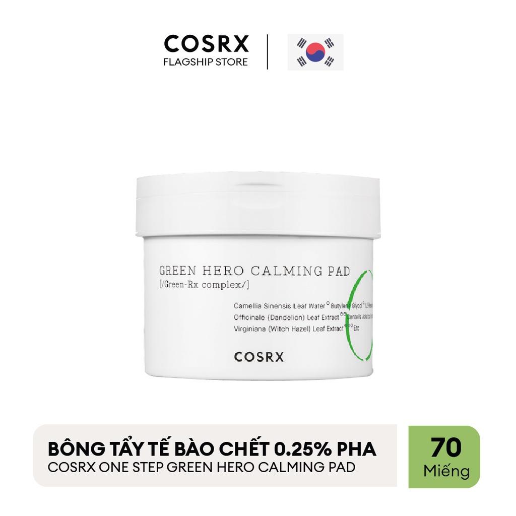 ✨Bông Tẩy Tế Bào Chết Hoá Học Dưỡng Ẩm Và Dịu Da (0.25 % PHA, Trà Xanh) COSRX One Step Green Hero Calming Pad 70 Miếng