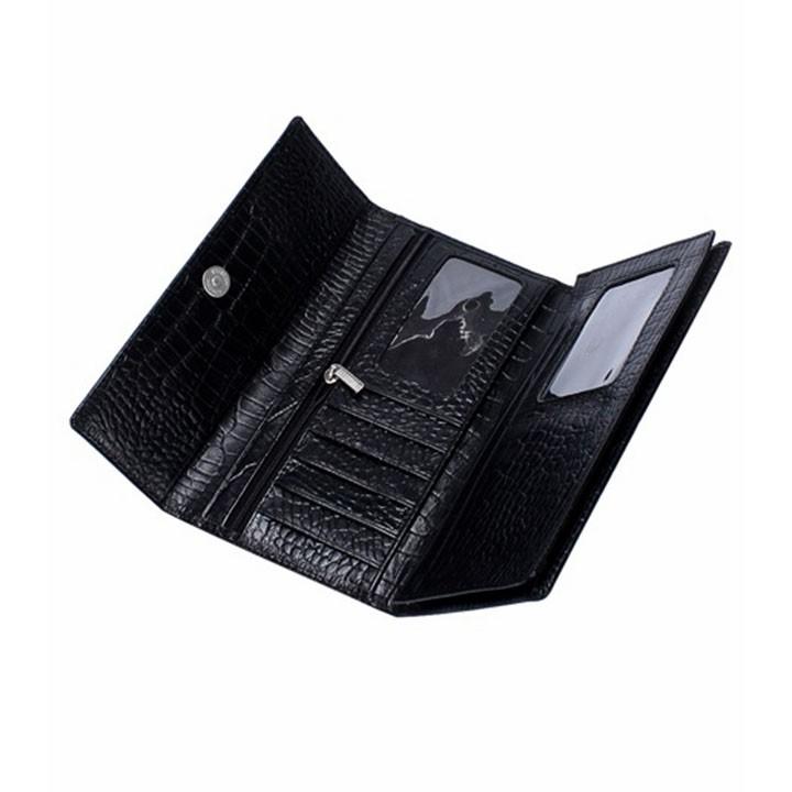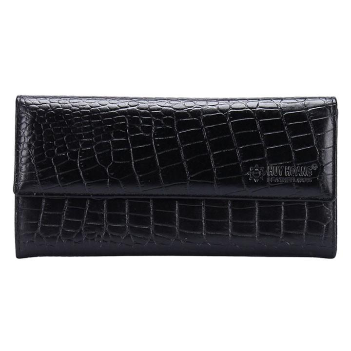 Ví/Bóp nữ da bò Huy Hoàng vân cá sấu nhỏ 3 gấp màu đen 3149