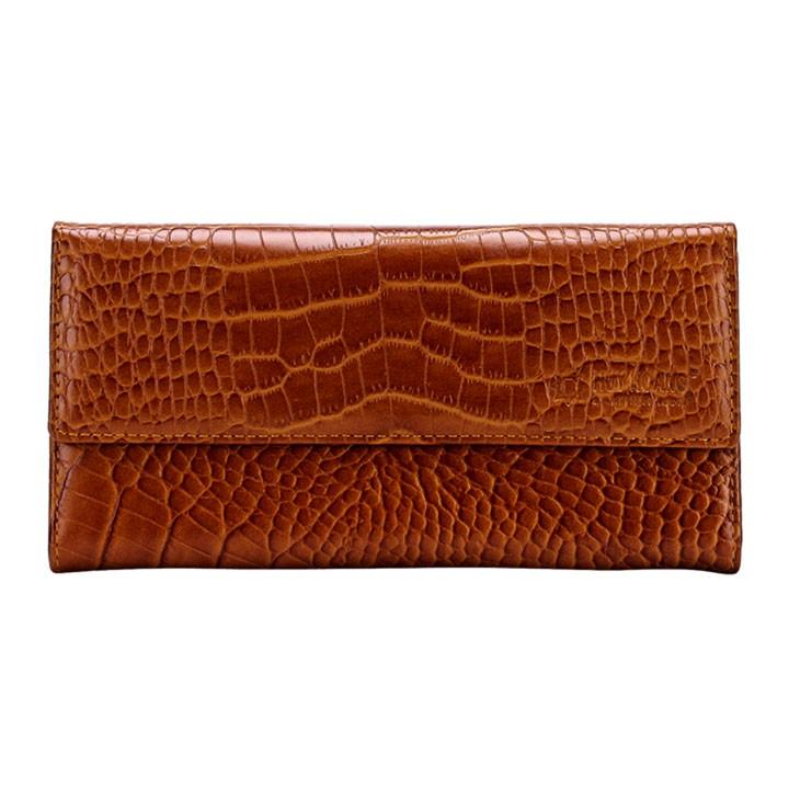 Ví/Bóp nữ da bò Huy Hoàng vân cá sấu lớn 3 gấp màu nâu đất 3153