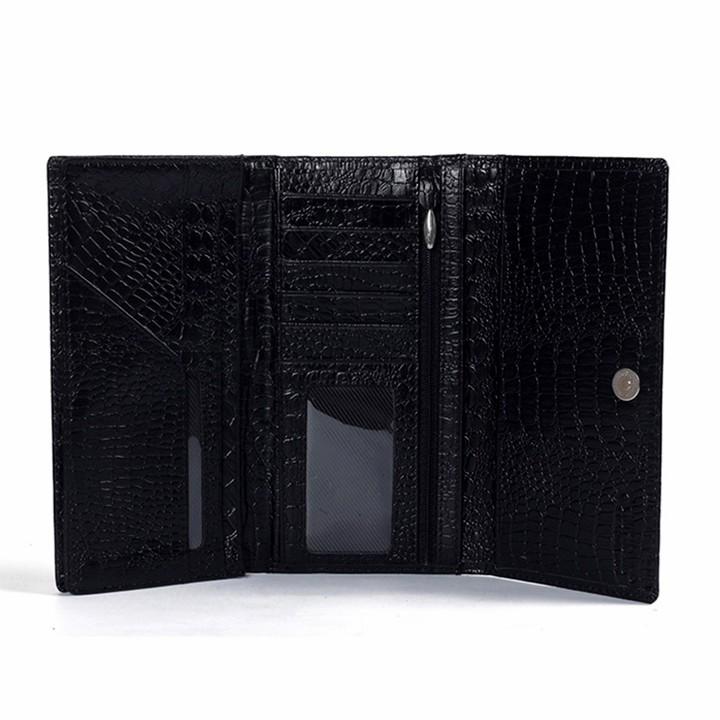 Ví nữ/Bóp nữ da bò vân cá sấu Huy Hoàng bấm nút màu da, đen, nâu 3108-09-10