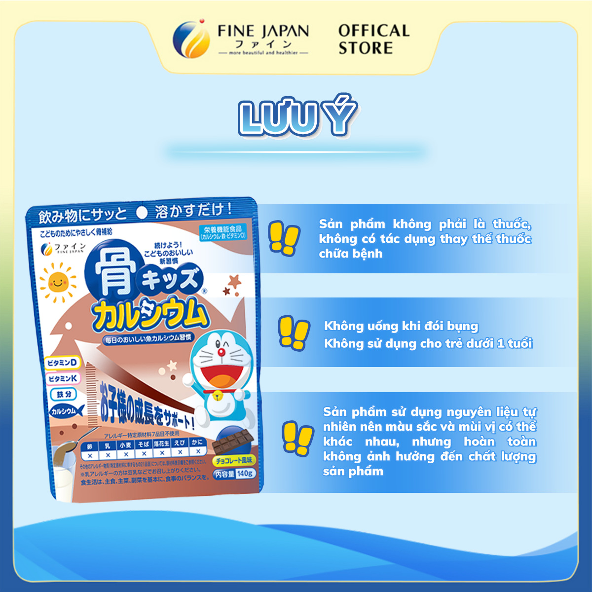 ✨Bột Canxi Cá Tuyết Bone’s Calcium DORAEMON FINE JAPAN bổ sung Canxi phát triển chiều cao gói 140g