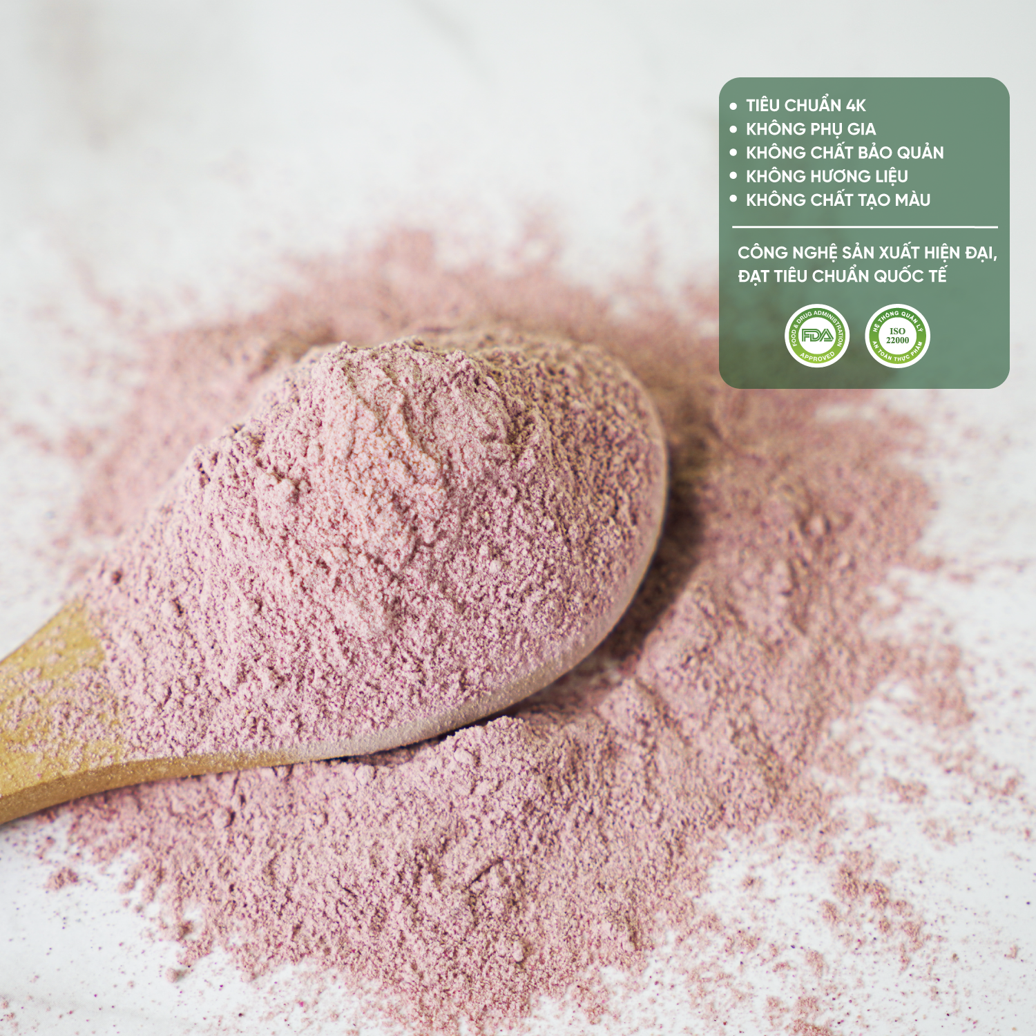 - Sản xuất theo tiêu chuẩn: ISO 22000:2018 và chứng nhận FDA xuất khẩu vào thị trường Hoa Kỳ.