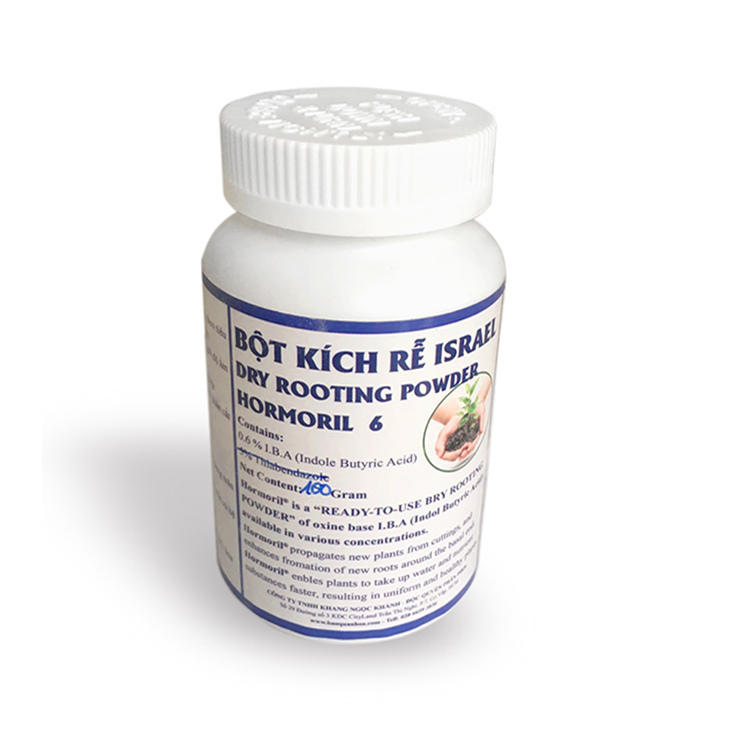 BỘT KÍCH RỄ ISRAEL DÀNH CHO CÂY THÂN GỖ – HORMORIL T6 – Nhập khẩu: Israel – Chức năng: dùng kích thích ra rễ, giúp rễ cây phát triển nhanh và an toàn 90%. Đặc