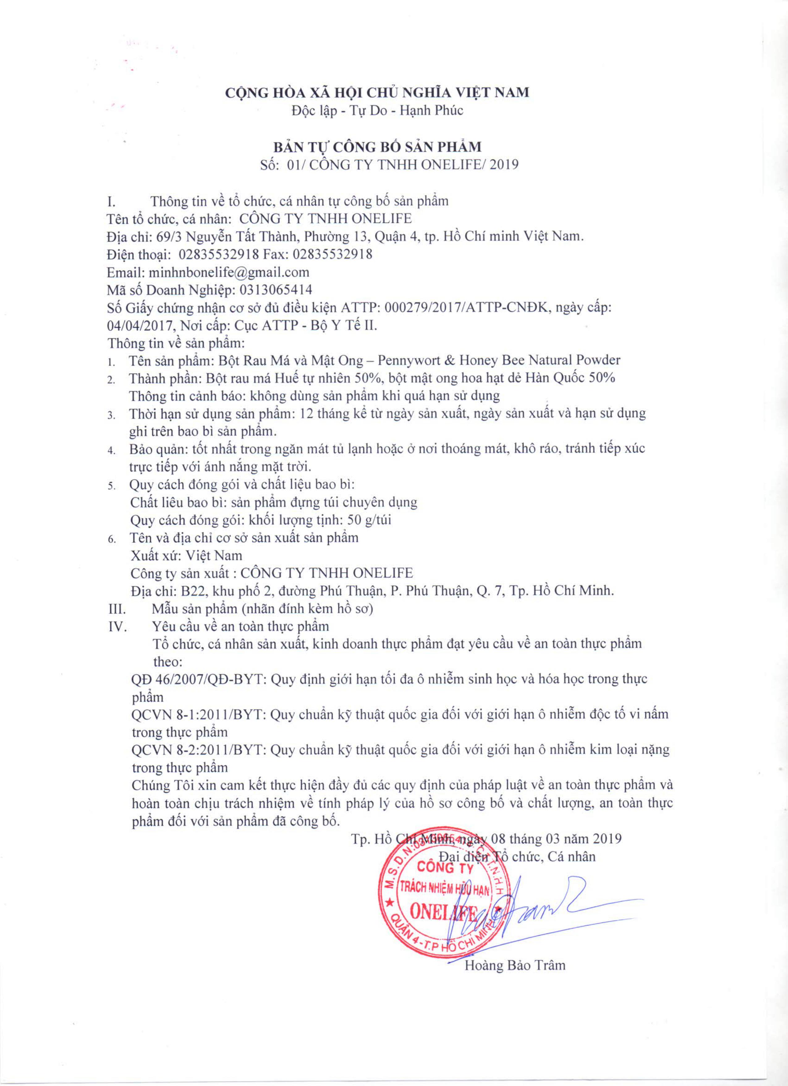 ✨Bột Mật Ong Rau Má Tự Nhiên OneLife (Hộp 50gr)