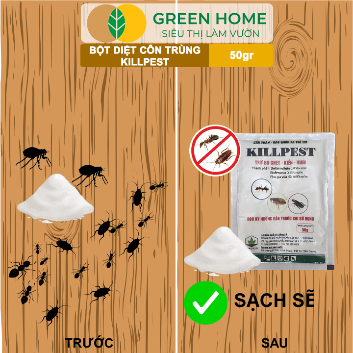 ✨Bột Phấn Kiến KillPest Vipesco, GreenHome, Gói 50gr, Hiệu Quả Cao, Diệt Trừ Bọ Chét, Kiến, Gián