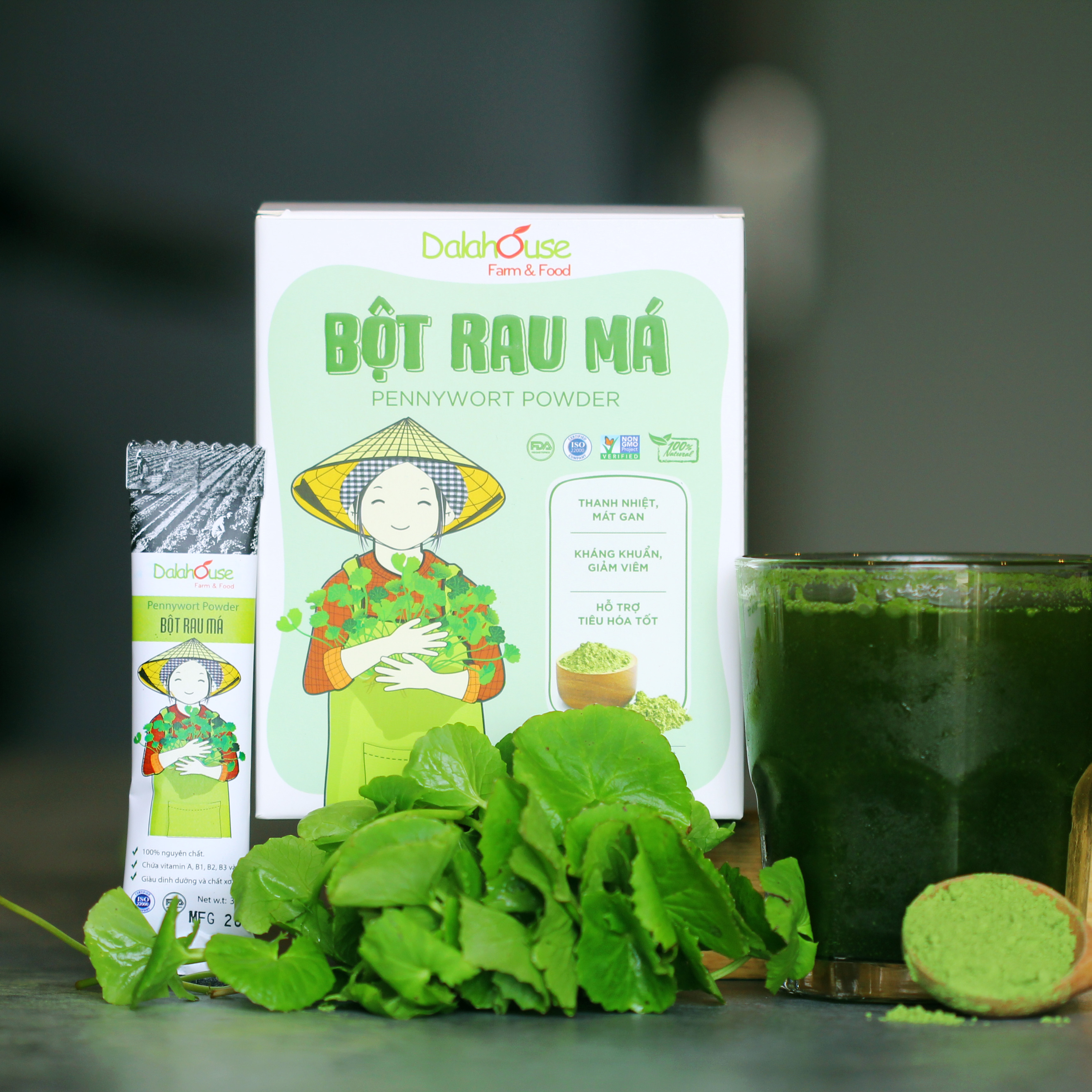 Bột rau má DalaHouse được sản xuất từ 100% rau má hữu cơ tươi được trồng và thu hoạch tại trang trại của DalaHouse tại Lâm Đồng. Chúng tôi sử dụng công nghệ sấy lạnh hiện đại và công nghệ nghiền thực phẩm ở nhiệt độ thấp giúp bảo toàn các enzym và chất dinh dưỡng của rau má.