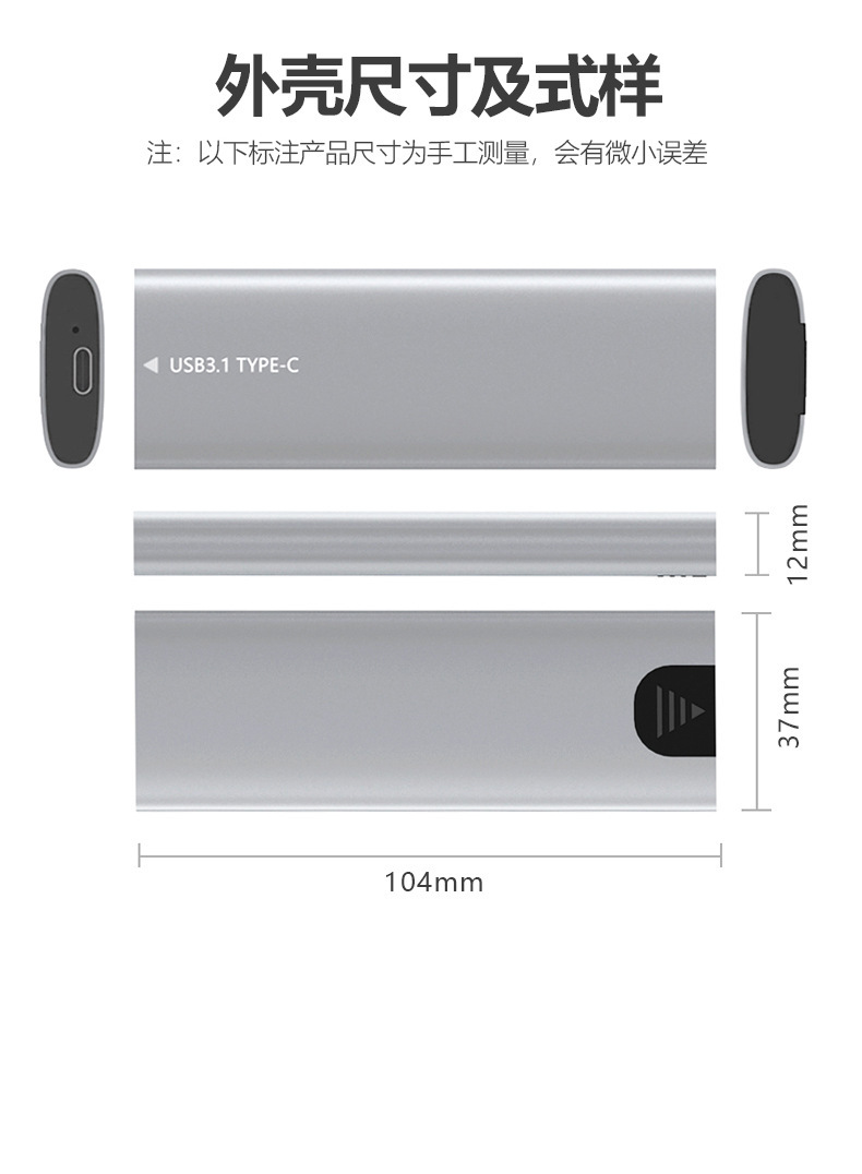 ORICO-USB3.1 Gen2 Type-C 10Gbps M.2 NVMe SSD 1)Chất liệu: Hợp kim nhôm + Bộ tản nhiệt hợp kim nhôm tích hợp 2)Màu sắc: Bạc / Vàng hồng / Xám 3)Kích thước: 107 (L) * 29mm