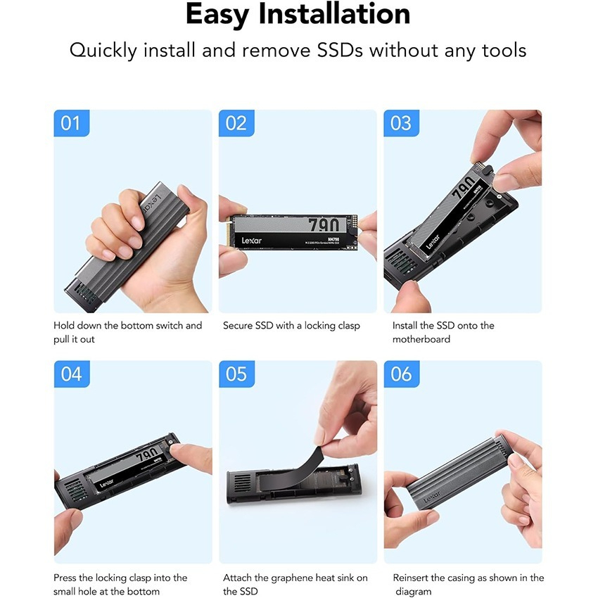 ✨Box ổ cứng Lexar E300 M.2 SSD Enclosure hỗ trợ NVMe SSD 2280/2260/2242/2230, USB 3.2 Gen 2 - Hàng chính hãng