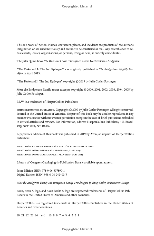 The first novel in Julia Quinn's worldwide bestselling Bridgerton novels, now a series created by Shondaland for Netflix. This is the story of Daphne Bridgerton and the Duke: welcome to the ballrooms of Regency London . . .