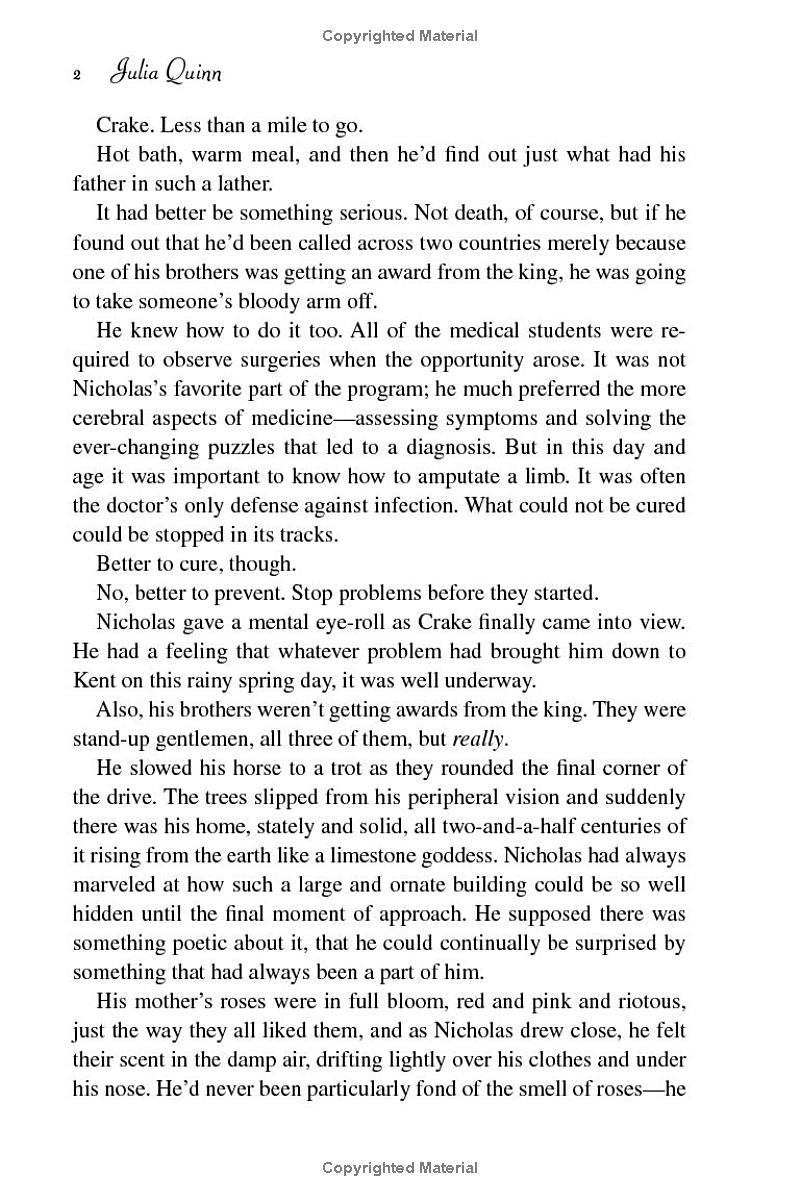 As the fourth son of an earl, Nicholas Rokesby is prepared to chart his own course. He has a life in Edinburgh, where he’s close to completing his medical studies, and he has no time—or interest—to find a wife. But when he discovers that Georgie Bridgerton—his literal girl-next-door—is facing ruin, he knows what he must do.