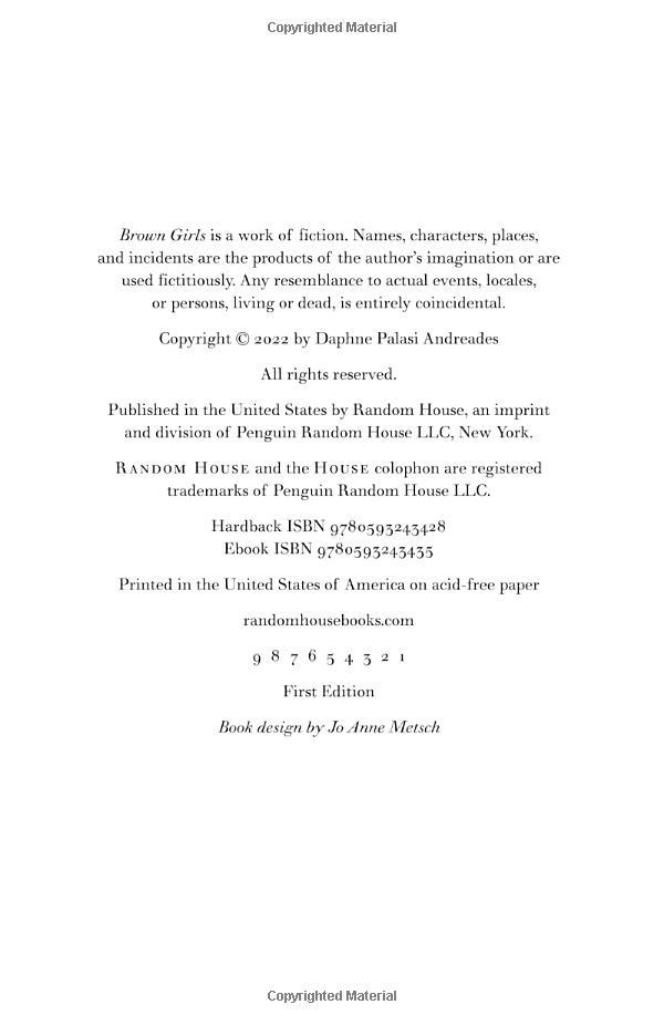 In this bold debut told in a uniquely lyrical voice, Daphne Palasi Andreades paints a stunning collective portrait of the journey from girlhood to adulthood, set against a backdrop of race, class, and marginalisation in America today. Brown Girls is an unforgettable love letter to women of colour everywhere from a daring new writer.