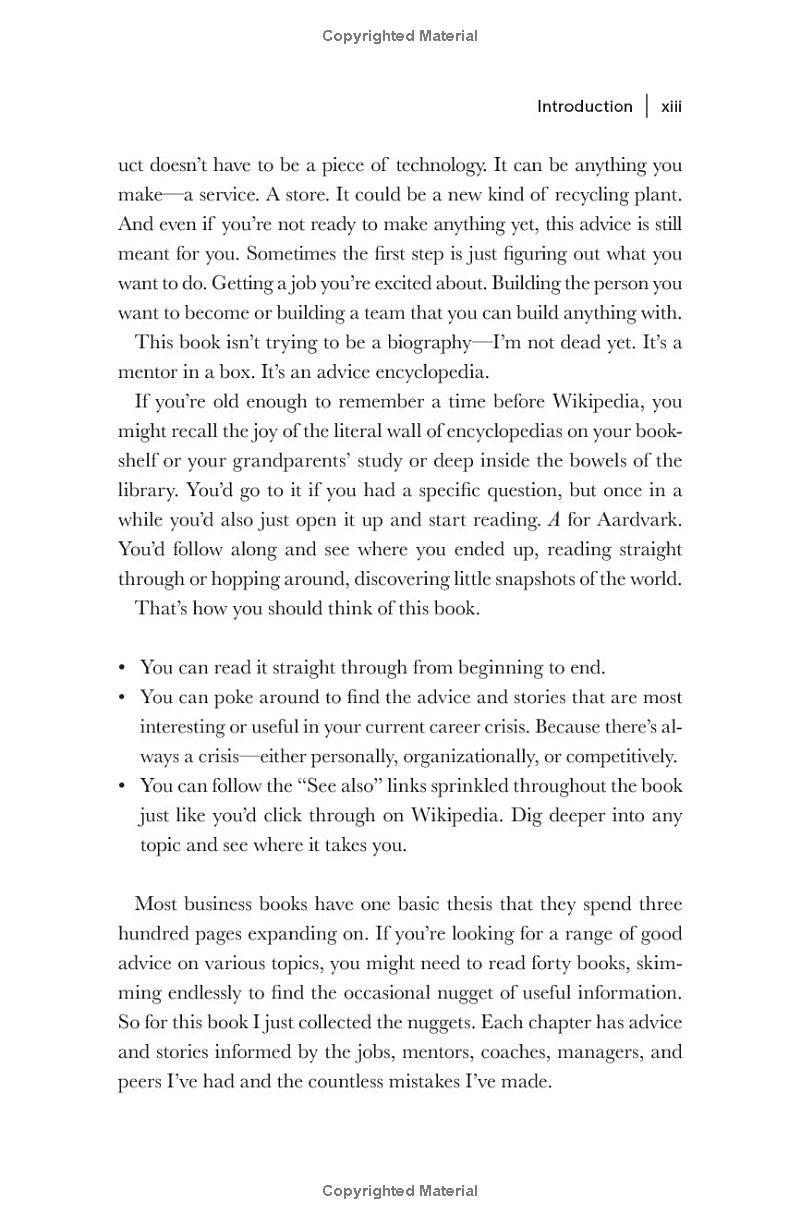 So that's what this book is. An advice encyclopedia. A mentor in a box.
