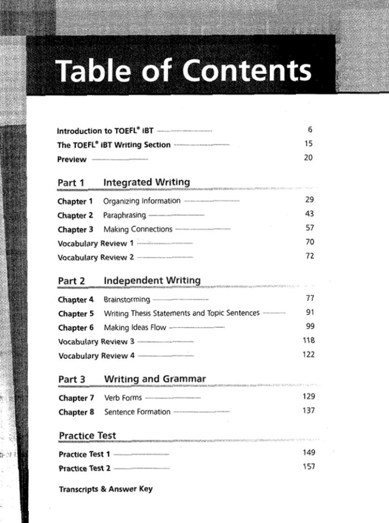 Giáo Trình Hướng Dẫn Ôn Tập Và Chuẩn Bị Cho Kỳ Thi Toefl Cuốn sách này chứa nhiều tài liệu cung cấp một khóa học chuẩn bị toàn diện cho phần thi Viết của TOEFL