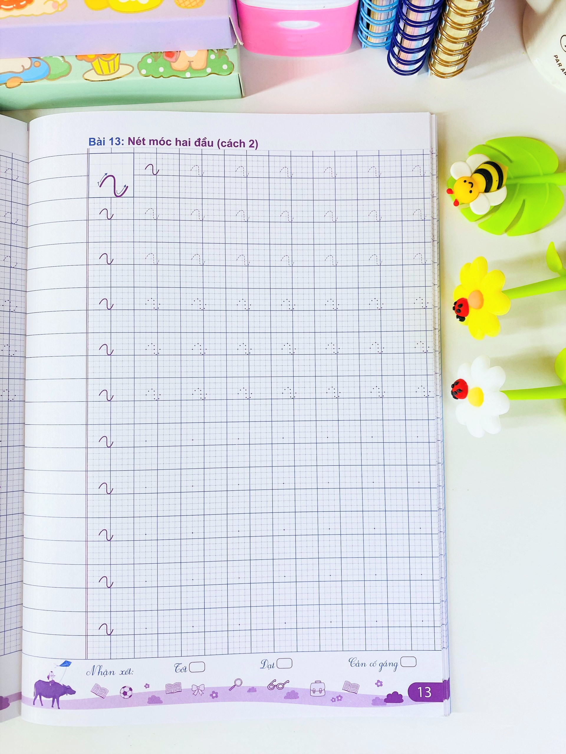 Mua tại TiktokBố cục 1 trang bài học, 1 trang luyện tập với phương pháp luyện viết từ nét đến chữ sẽ giúp cho bé dễ dàng nắm bắt cách thức viết đúng, viết đẹp. Đây là phương pháp luyện viết hiệu quả nhất, được nghiên cứu và triển khai thử nghiệm tới hàng triệu trẻ em trong vài năm qua và đạt kết quả ngoài mong đợi.