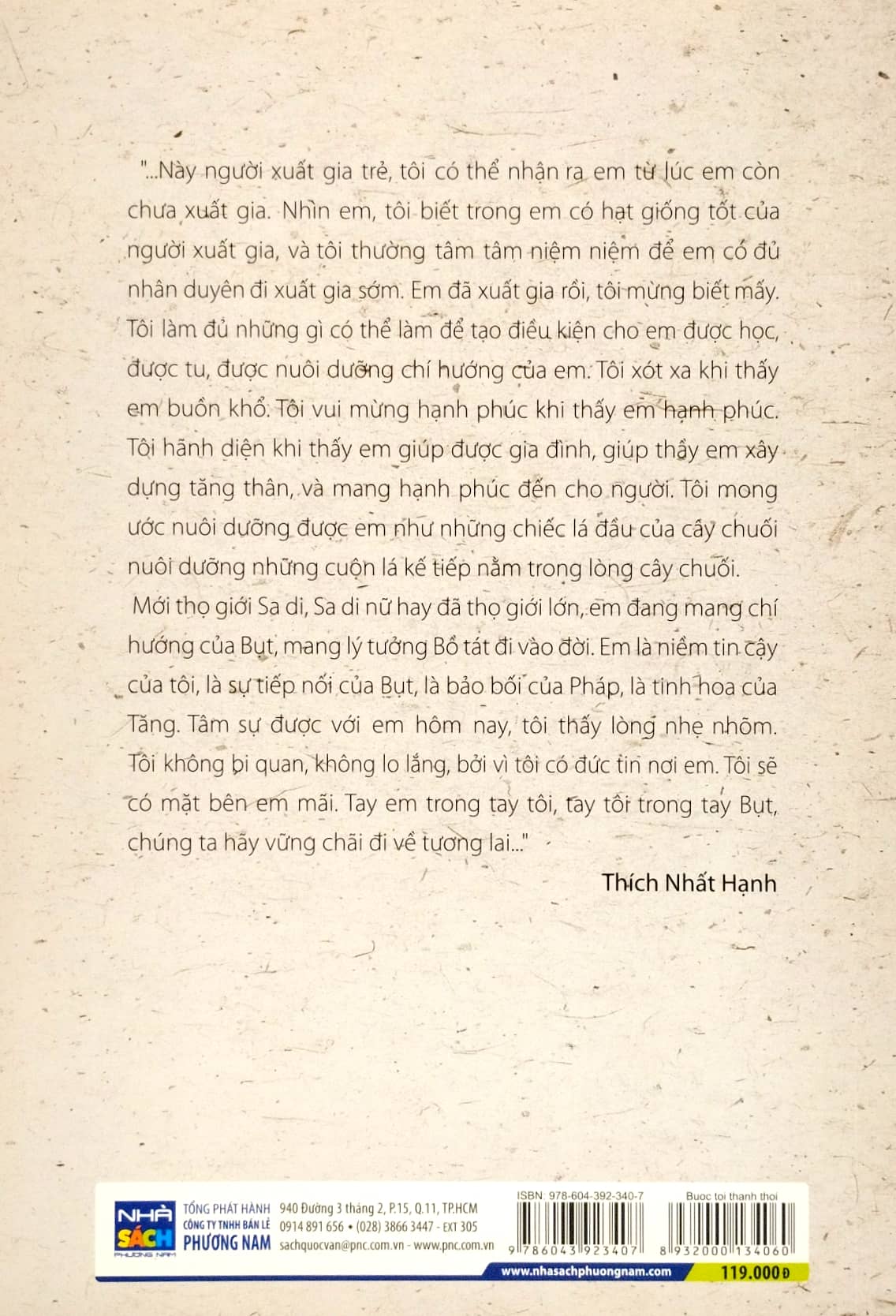 Sách Sa Di Luật Nghi Yếu Lược của thầy Châu Hoằng (trụ trì chùa Vân Thê, 1535-1615) viết vào cuối thế kỷ thứ mười sáu, đến nay đã tròn bốn trăm năm. Sách này không còn đáp ứng được một cách đầy đủ những nhu yếu hiện thời của các vị Sa di, cho nên các vị Giáo thọ của đạo tràng Mai Thôn đã quyết định biên soạn cuốn Bước Tới Thảnh Thơi này. Ta biết rằng trong lãnh vực sách giáo khoa, khoa học cũng như văn chương, mỗi năm đều có nhiều tác phẩm mới ra đời để cung ứng cho nhu cầu học hỏi và thực tập. Bốn trăm năm là một thời gian quá lâu. Các vị Sa di không thể chờ đợi lâu hơn nữa.