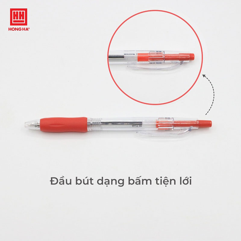 ✨Bút bi bấm Hồng Hà đầu bi 0.7mm cho nét viết êm, trơn, có grip cao su - 2468
