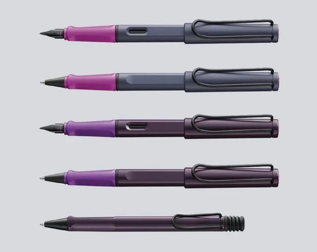 Lamy Safari Pink Cliff Ftn & Rollerball, Violet Blackberry Ftn & Rollerball w/ matching Ink. #lamy