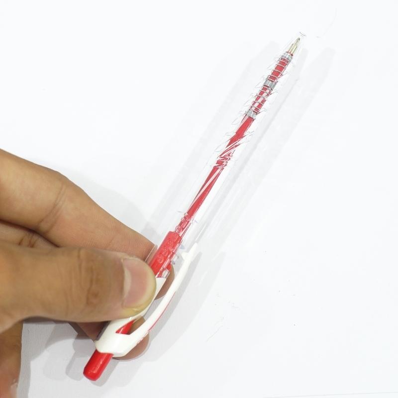Thân bút bằng nhựa nhìn thấy rõ ruột bút và màu mực bên trong