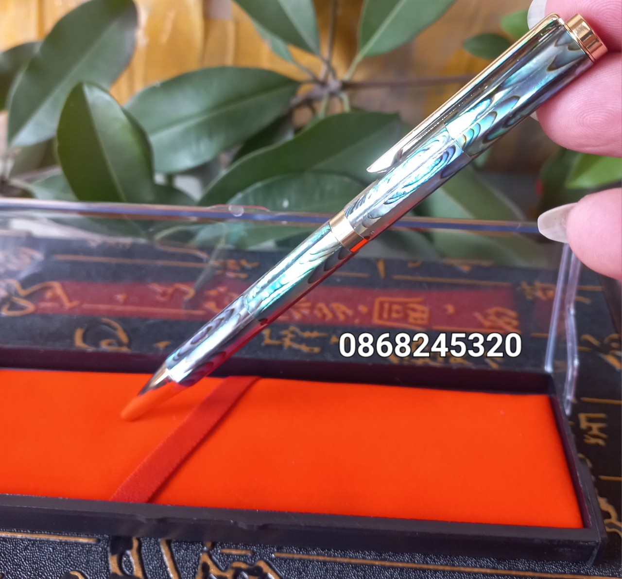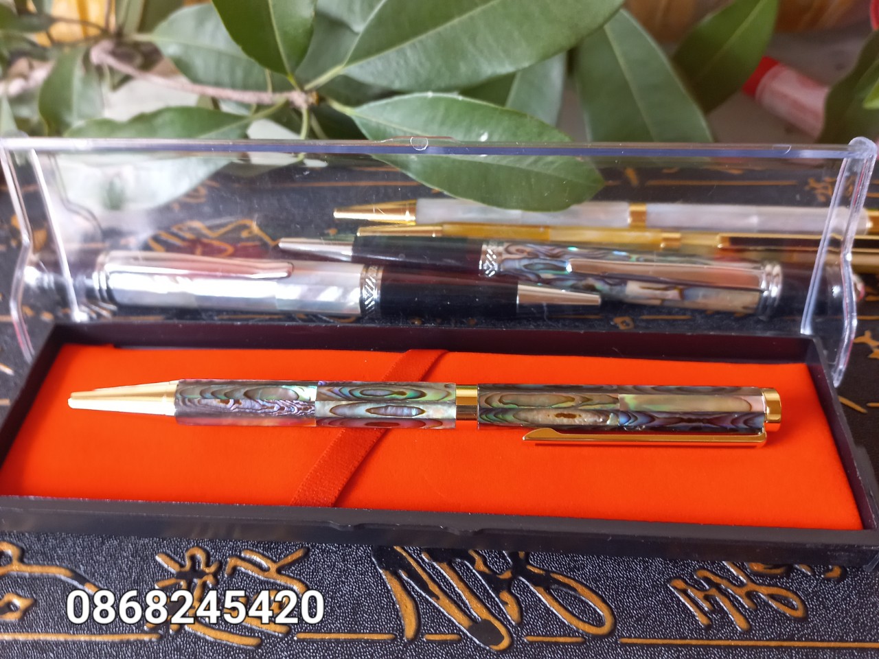 Mua tại Tiktok_ Bút bi viết ký được làm bằng chất liệu đồng khảm xà cừ vỏ bào ưng biển xanh tự nhiên liệu 100%