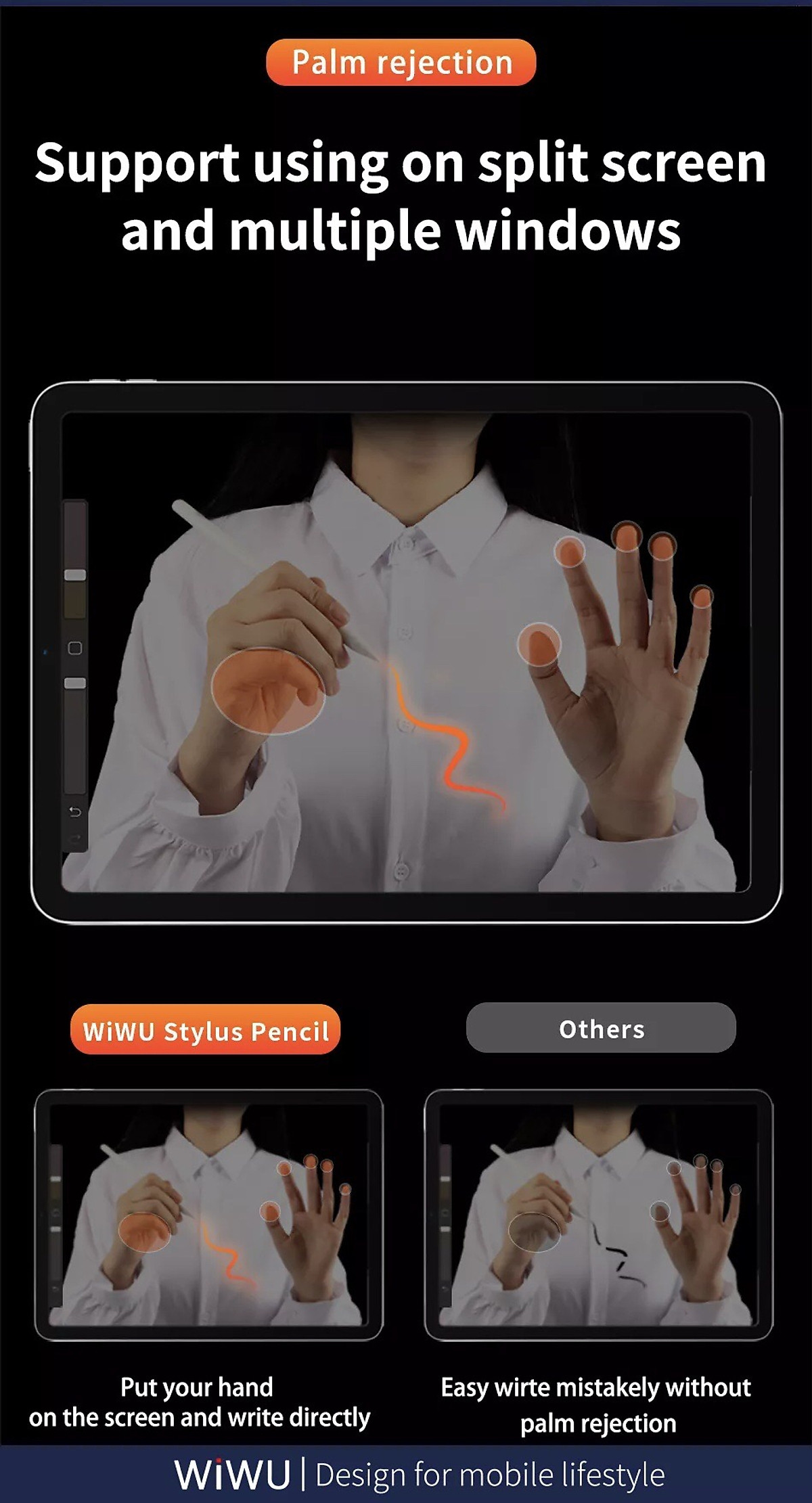 Bút không có khả năng chống tì tay Thông tin sản phẩm : Bút cảm ưng WI WU Pencil Max máy tính bảng IPad , Sam sung Tad , Điện thoại thông minh , sử